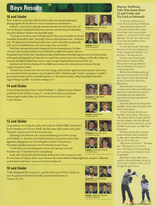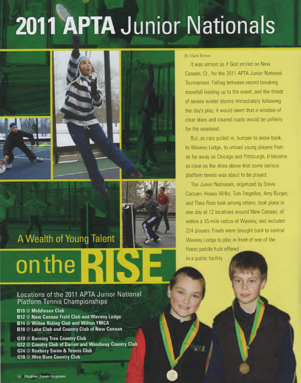 It was almost as if God smiled on New Canaan, Ct., for the 2011 APTA Junior National Tournament. Falling between record-breaking snowfall leading up to the event, and the threat of severe winter storms immediately following the day’s play, it would seem that a window of clear skies and cleared roads would be unlikely for the weekend.