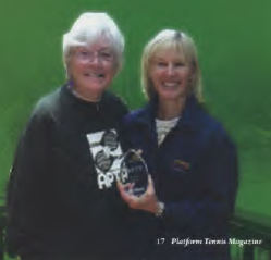 Tom Mayes says, “Her infectious and enthusiastic nature got me and many, many others involved in our fun sport. Without her, the face of platform tennis in our local community may not even exist.”