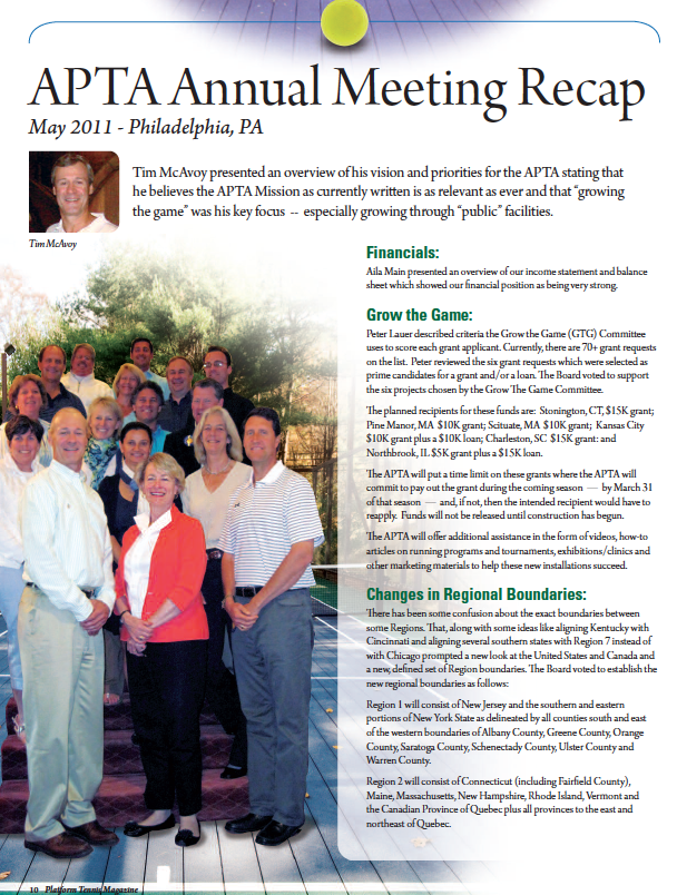Source: Platform Tennis Magazine, Vol. 13, Issue 1, October, 2011