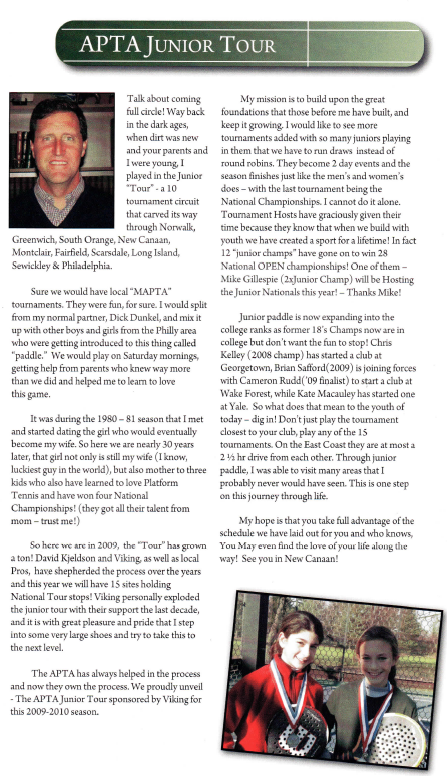 The APTA has always helped in the process and now they own the process. We proudly unveil – The APTA Junior sponsored by Viking for the 2009-2010 season.