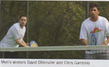 In the men’s draw, the top seeds proceeded to the semis with only a few minor upsets…that is if you ignore the fact that the 10th seeded team of Mike Stulac (Toronto) and Scott Bondurant (Chicago) defeated Cosimano/Stipa in the 16s, Goodspeed/Mansager (6-2,6-2) in the quarters, and Estes/Mackesy(4-6,6-0,7-6) in the semis…not to mention Dollard/Hallet(7-6, 6-7,7-6?) in the 32’s! On the other half of the draw, defending champs Chris Gambino and David Ohlmuller defeated Hough/Uihlein in the Semis and Kaufman/Milbank in the quarters to reach the finals. The 7-6, 6-4 final match-up was a battle with the defending champions prevailing.