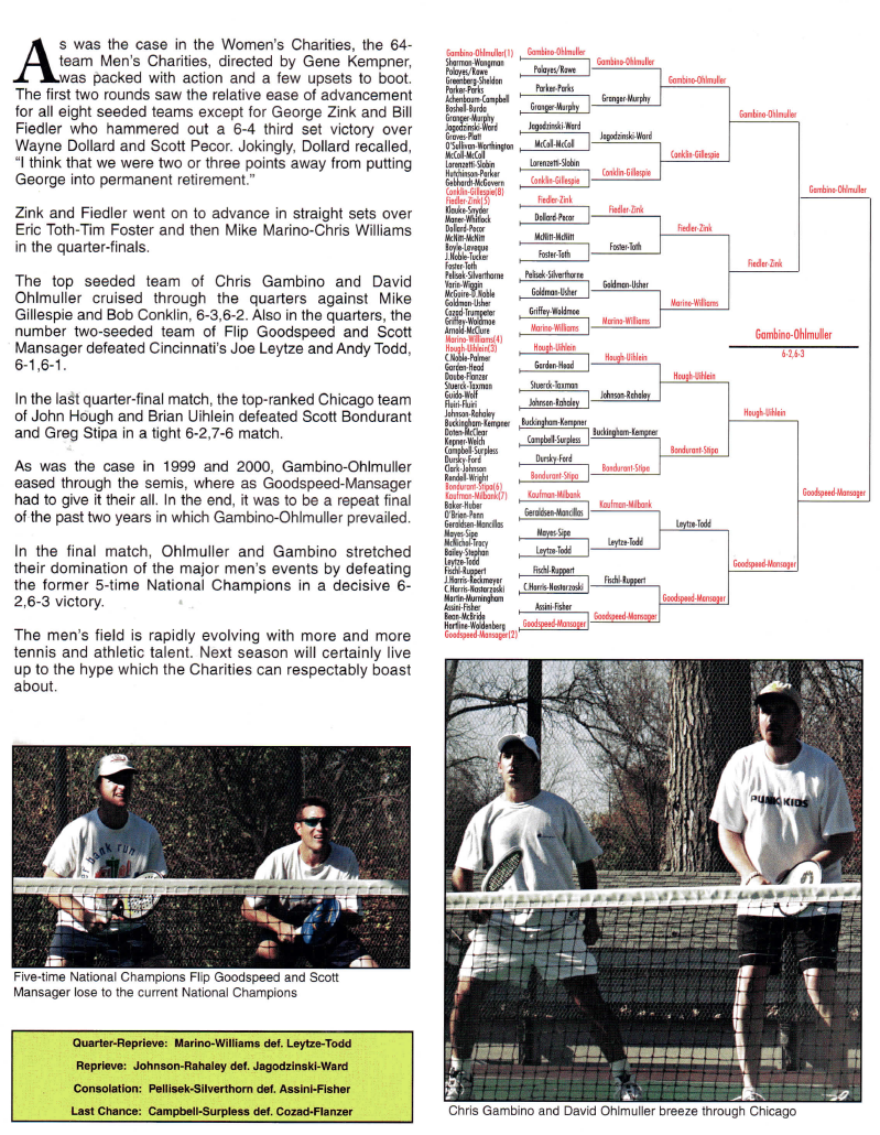 As was the case in 1999 and 2000, Gambino-Ohlmuller eased through the semis, where as Goodspeed-Mansager had to give it their all. In the end, it was to be a repeat final of the past two years in which Gambino-Ohlmuller prevailed.