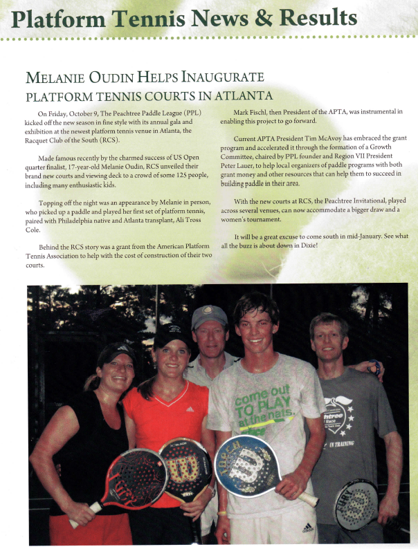 Behind the RCS story was a grant from the American Platform Tennis Association to help with the cost of construction of their two courts.