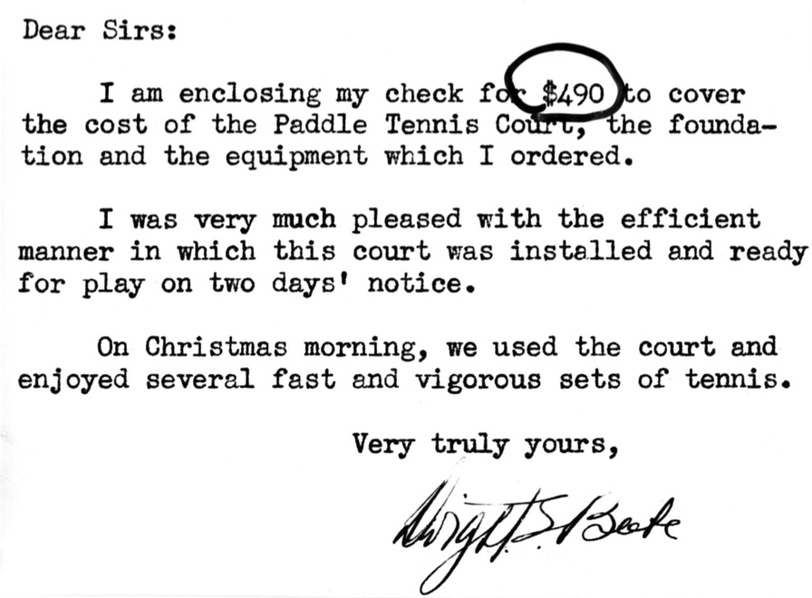 The early court construction had been greatly helped by the efforts of Henry B Eaton who was working for a lumber company in NYC. In the late 1930’s, the lumber company was liquidated, but fortunately the work Eaton had done in providing an easy and convenient way for clubs and individuals to obtain platforms inspired one of the company’s employees, Joseph Russhon, to take over its platform tennis business and he continued operations as the Gates Sports Platform Company.
