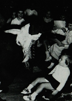 George R. Harrison elected FMTC President (1961-1963) George R. Harrison, 1983. Photograph taken at the celebration of Fox Meadow Tennis Club's centennial The Secret is out. Santa is George Harrison and Jennifer Ware, aged two, is enthralled