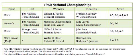 Telesports made a 16mm sound film of about 5 minutes showing part of the 1960 National Men’s Doubles Finals. The APTA 1963 Annual Meeting Minutes indicated that the film was the property of the APTA and was available to any member club at no cost by contacting the Secretary-Treasurer.