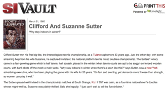 Cliff and Suzanne Sutter captured the Mixed over FMTC’s Susan Beck Wasch and her brother John Beck, earning them a mention in the March 21st edition of Sports Illustrated.