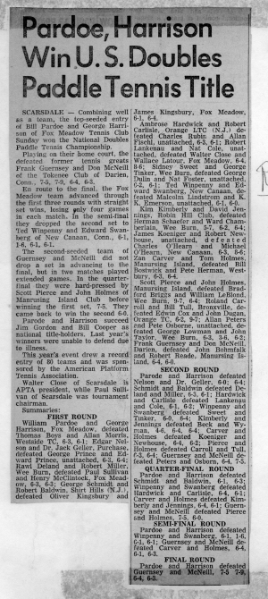 Source: Oliver H. Durrell The Official Guide to Platform Tennis, 1967