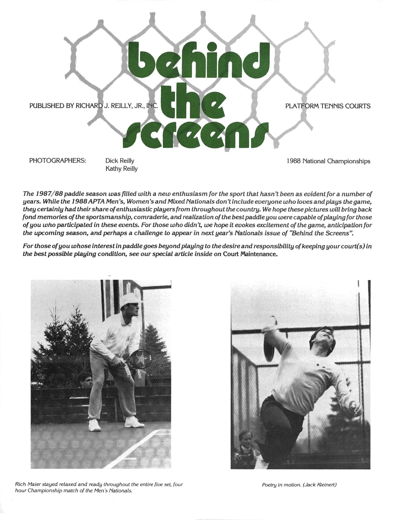 Source: Platform Tennis News, Spring 1988 & Summer 1988