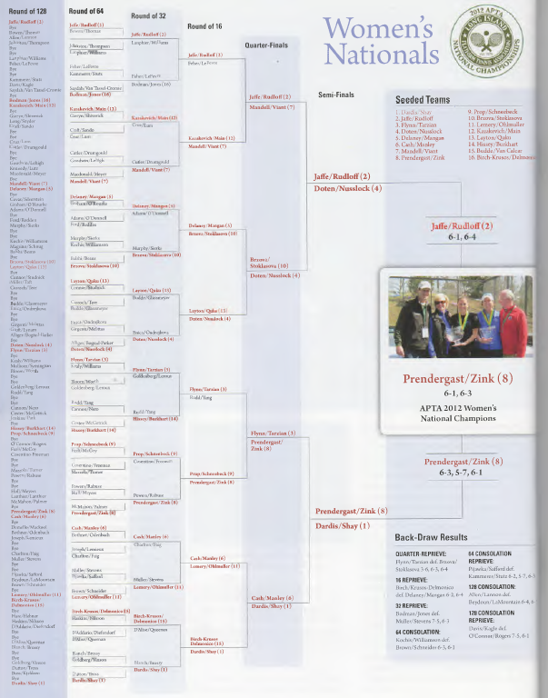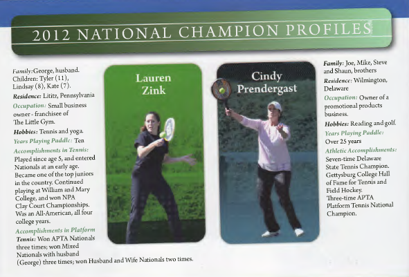 Last year, Lauren Zink and Cindy Prendergast plowed through the APTA National Championships, in Chicago, without dropping a set. Concluding her victory speech in 2011,