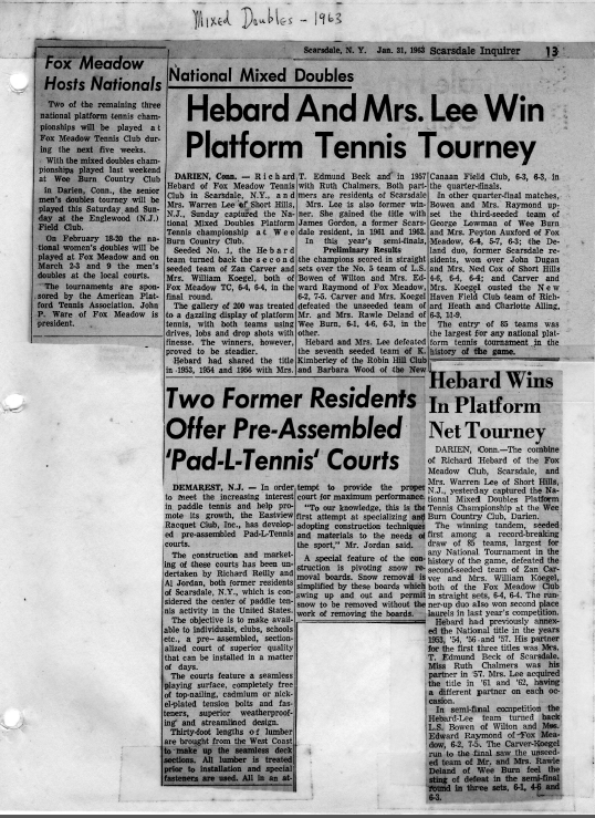 Hebard and Carver won their third straight Men’s title, and Charlotte Lee won her second Women’s title with a new partner, Buffy Briggs, and her third straight Mixed, but this time with Dick Hebard, rather than James Gordon.