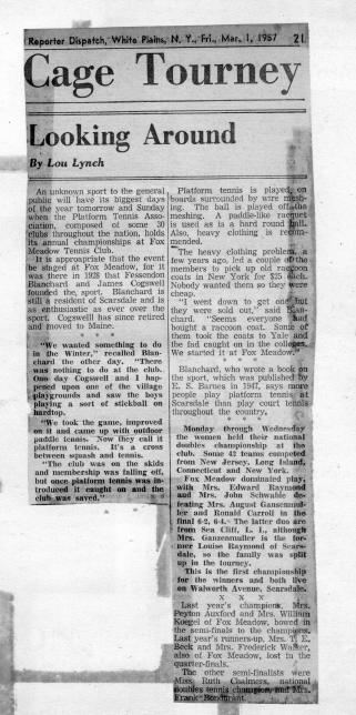 Source: Fessenden S. Blanchard, Platform Paddle Tennis, 1959, and Paddle World Feb/Mar 1979