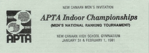 Merrill Lynch was the sponsor and The New Canaan Sports Council, the host. Elimination matches were held throughout lower Fairfield County at area clubs, with final rounds of the men’s and women’s Nationals and President’s Cup playoffs held indoors at New Canaan High School on a court specially constructed by R.J. Reilly for the occasion.