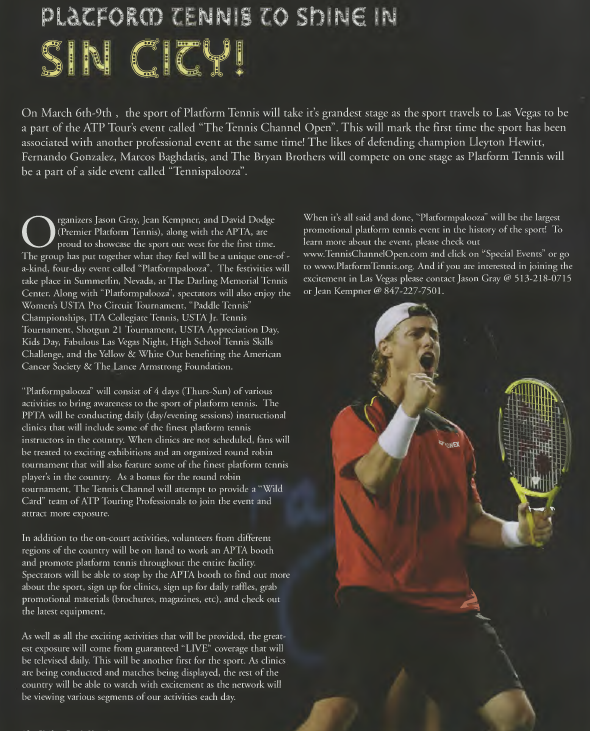Source: Platform Tennis Magazine, Vol. 9, Issue 4, March, 2008