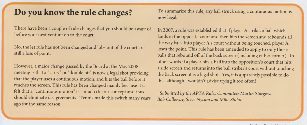 The APTA Rules Committee (Martin Sturgess, Bob Callaway, Steve Nycum and Mike Stulac) filed this update with PTM: