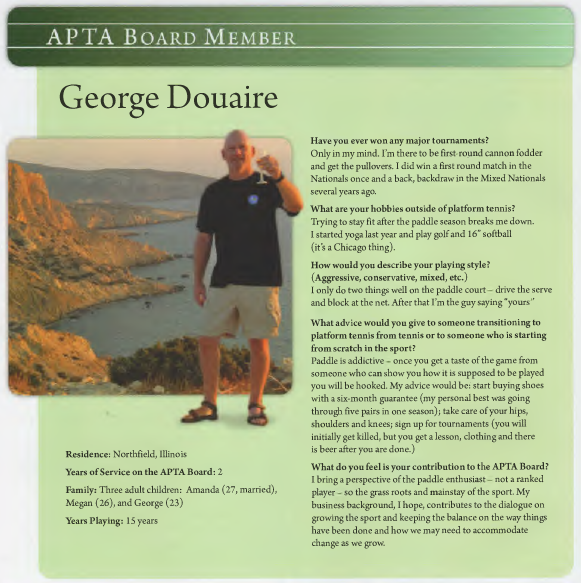 Source: Platform Tennis Magazine, Vol. 14, Issue 3, January, 2013