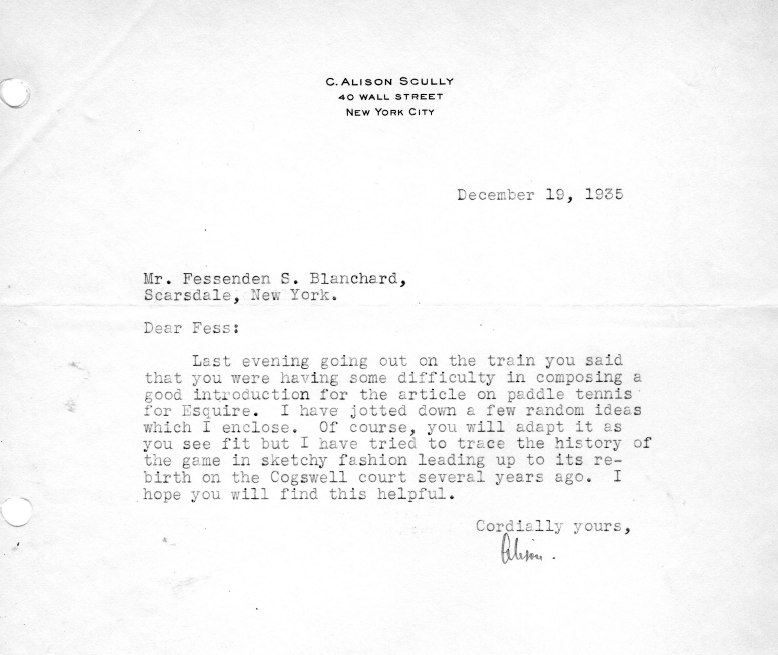 In December 1935, Scully shared the bulk of his research in a letter to Blanchard as part of an article Blanchard was writing for Esquire.