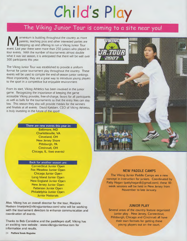 Looking ahead to January, there will be new events in Cleveland, Pittsburgh and Charlottesville prior to the traditional Nationals tune-up, the New Jersey Junior Open. After Junior Nationals, there will be two Connecticut events, a second Chicago event and a new tournament in Cincinnati to wrap up the 2007 tour.