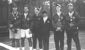 18 and-under winners Patrick and Pat Nowlan from Philadelphia (R) are congratulated by David Kjeldsen and Caryl Swain, as are runners-up Ben and John Holskin, also from Philly. 18 and-under winners Patrick and Pat Nowlan from Philadelphia (R) are congratulated by David Kjeldsen and Caryl Swain, as are runners-up Ben and John Holskin, also from Philly.